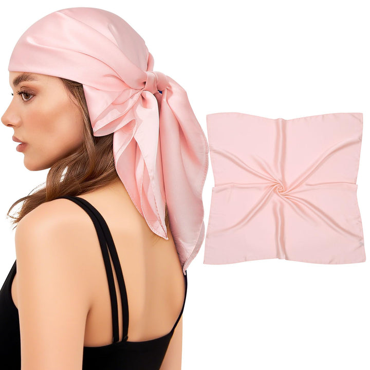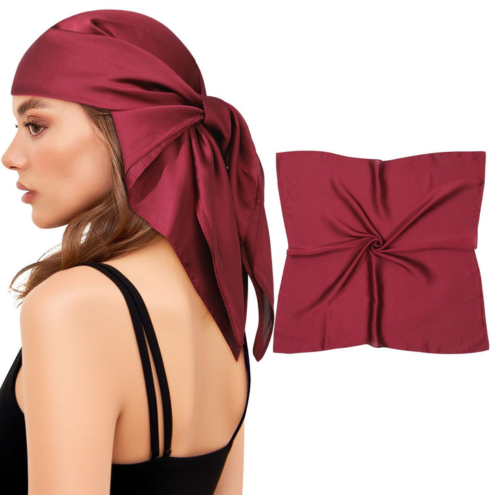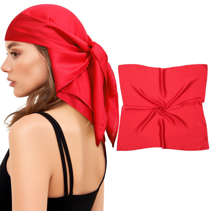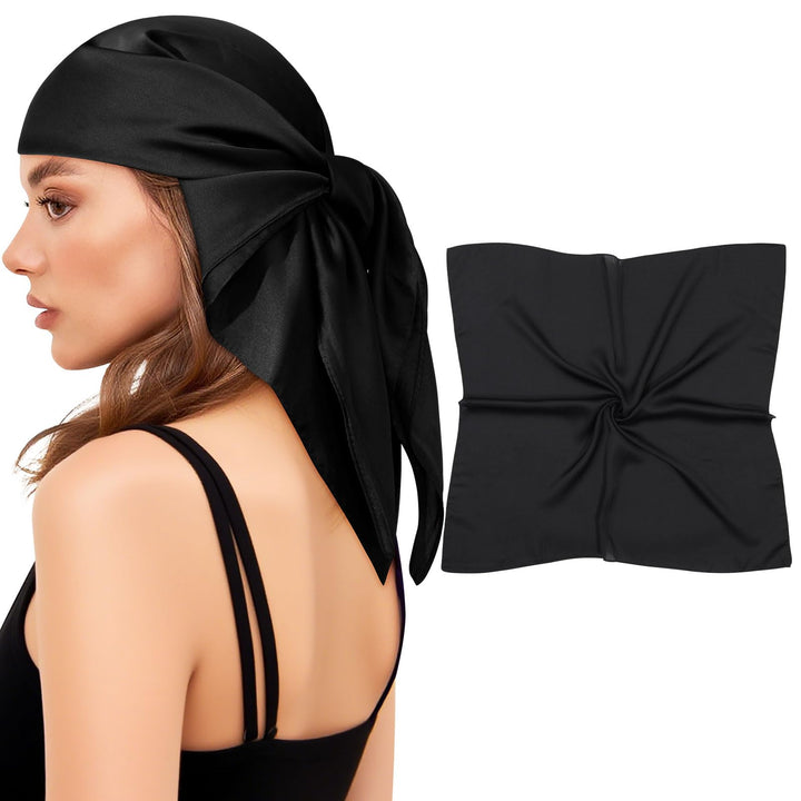 AWAYTR 27.5" Square Satin Head Scarf - Silk Hair Scarf Square Hair Bandanas Large Scarf Sleeping Head Wraps for Women