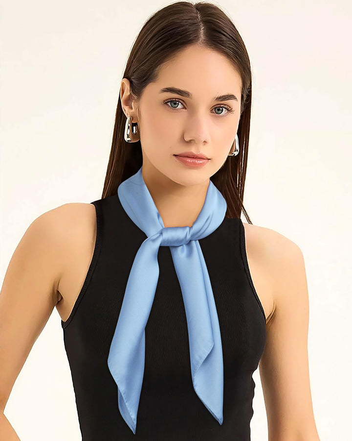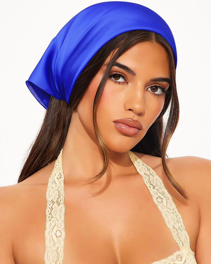 Elevate your style with this versatile 27.5-inch square satin head scarf from AWAYTR. Crafted from 100% polyester with a luxurious silk-like finish, this fashionable accessory serves multiple purposes - from a sophisticated hair bandana to an elegant head wrap. The standard-sized scarf features a generous square design that provides ample coverage and styling options. Perfect for sleeping comfort or creating various fashionable looks, this scarf comes in a range of stylish prints. The lightweight fabric drapes beautifully and feels smooth against your skin. Designed specifically for women, this versatile accessory can be styled in numerous ways to complement any outfit. Hand wash recommended to maintain its pristine condition. The scarf arrives neatly packaged, ready to become your go-to accessory for both practical and fashion-forward moments.