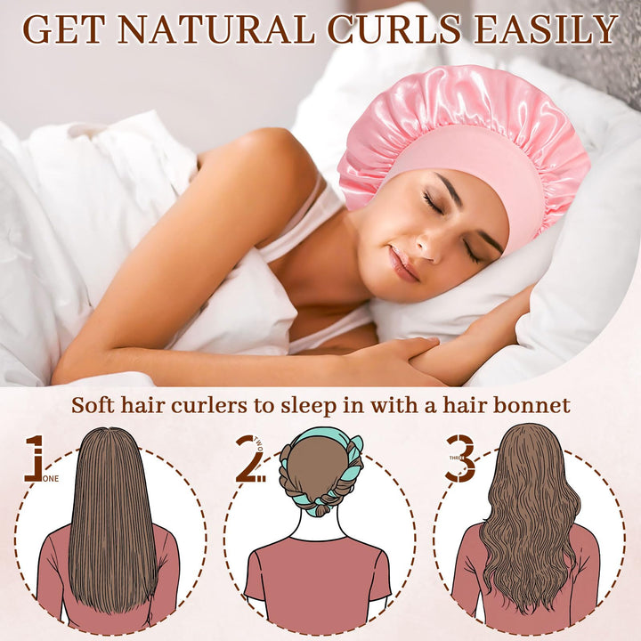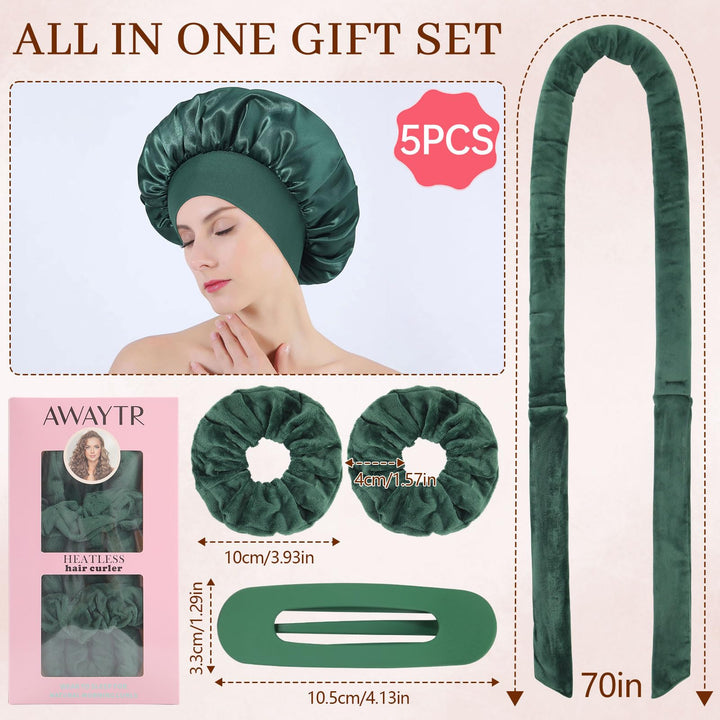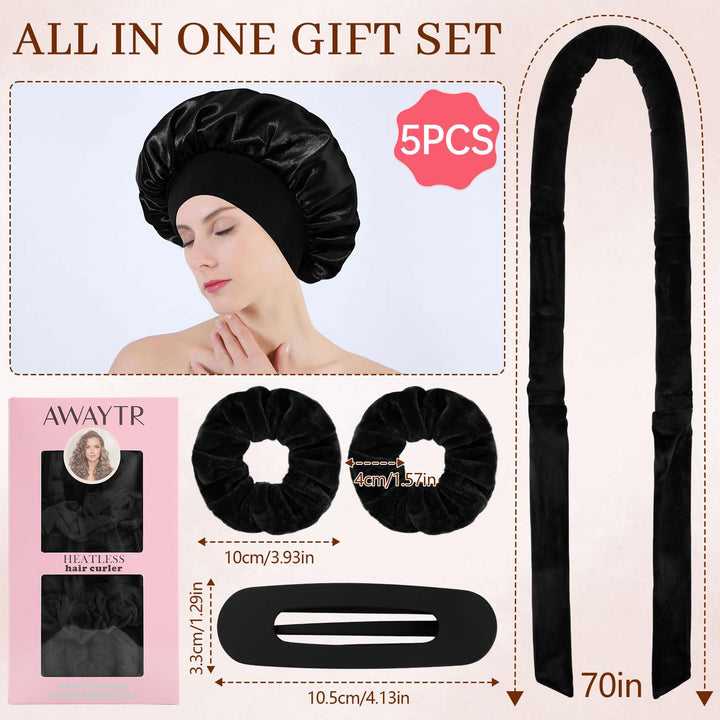 - PROTECT HAIR WITH HEAT-FREE CURLING SET - Achieve stunning curls while keeping your hair healthy and shiny with our gentle heat-free curling method. The set includes a no-heat hair curler, 2 velvet hair scrunchies, a hair clip, and a satin bonnet for all your styling needs.